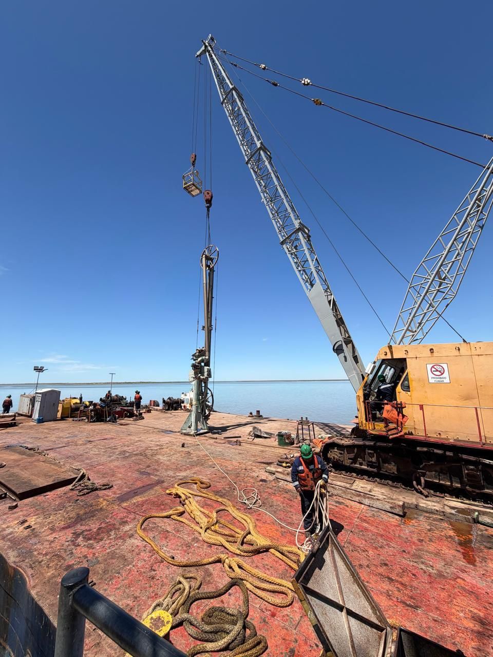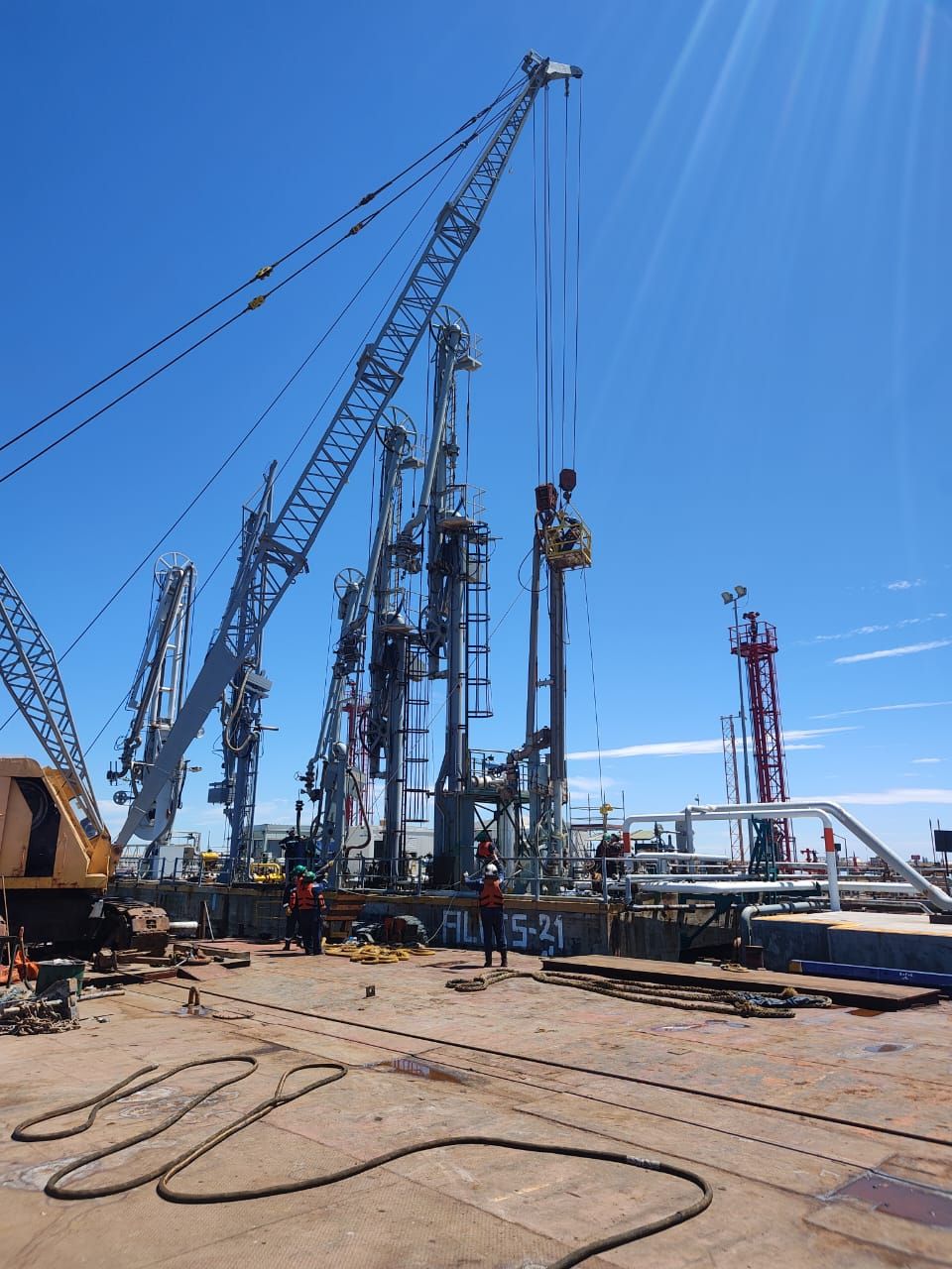 Una vez desmontado, el brazo de carga fue trasladado en pontón hasta el sitio 5/6 de Puerto Galván, donde posteriormente se efectuó su transporte terrestre hacia el predio de Posta de Inflamables para continuar con las etapas previstas del proceso.