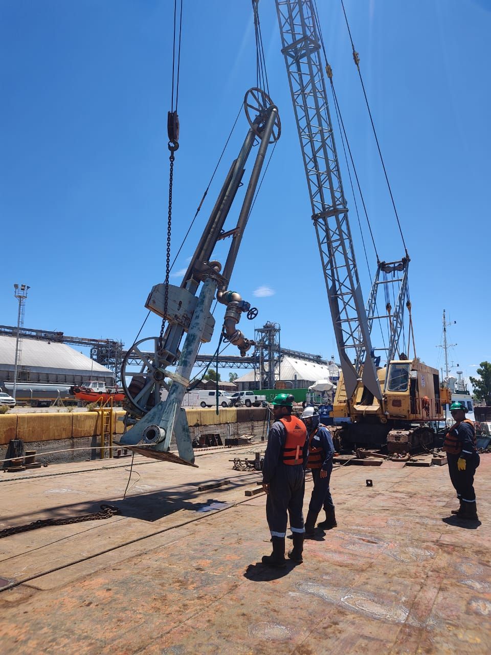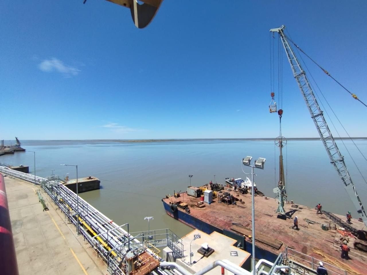 Operativo de desmontaje y traslado del brazo de carga marino Nº 6 en Puerto de Bahía Blanca